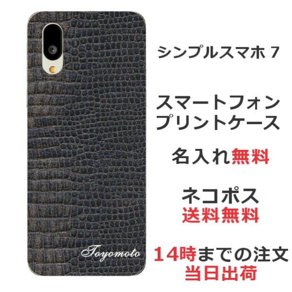 シンプルスマホ7 A404SH らふら 名入れ スマホケース クロコダイル ブラック