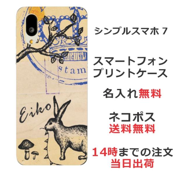 シンプルスマホ7 A404SH らふら 名入れ スマホケース アンティークうさぎ
