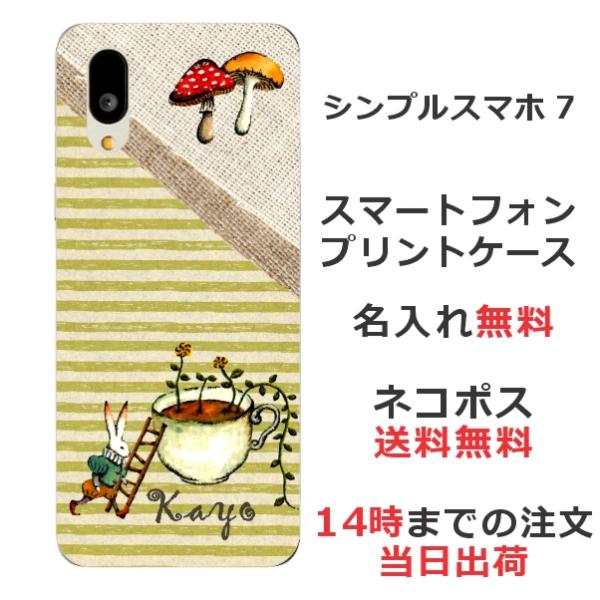 シンプルスマホ7 A404SH らふら 名入れ スマホケース ティーカップうさぎ