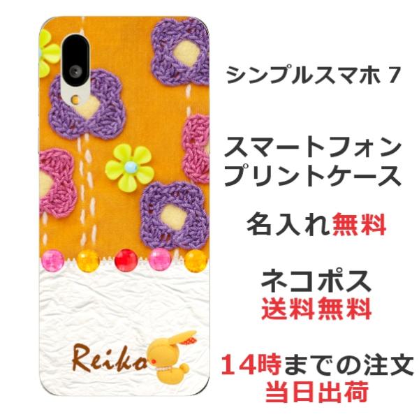 シンプルスマホ7 A404SH らふら 名入れ スマホケース キルトフラワーオレンジ