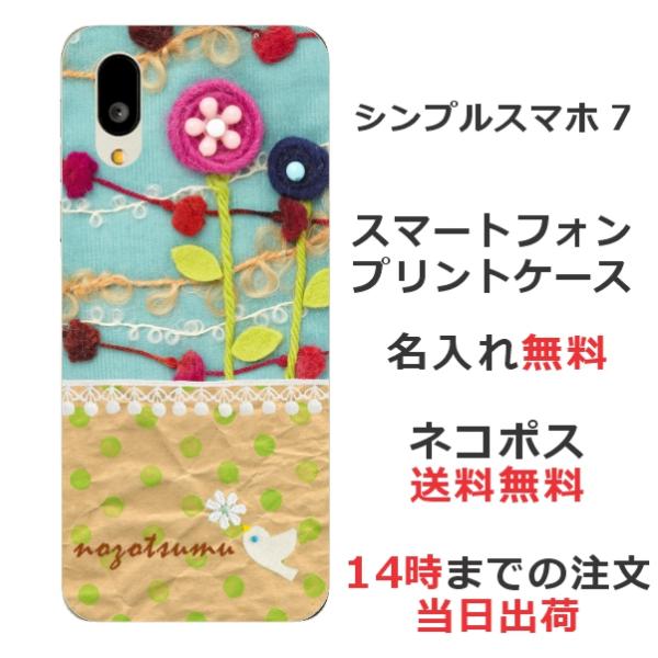 シンプルスマホ7 A404SH らふら 名入れ スマホケース キルトフラワーブルー