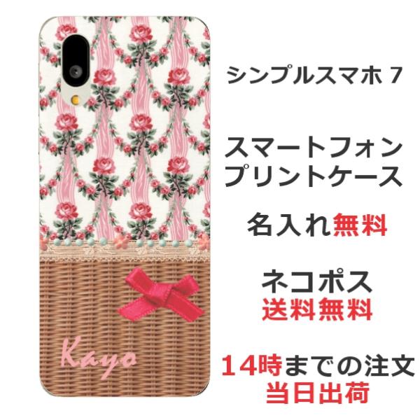 シンプルスマホ7 A404SH らふら 名入れ スマホケース バラリボン