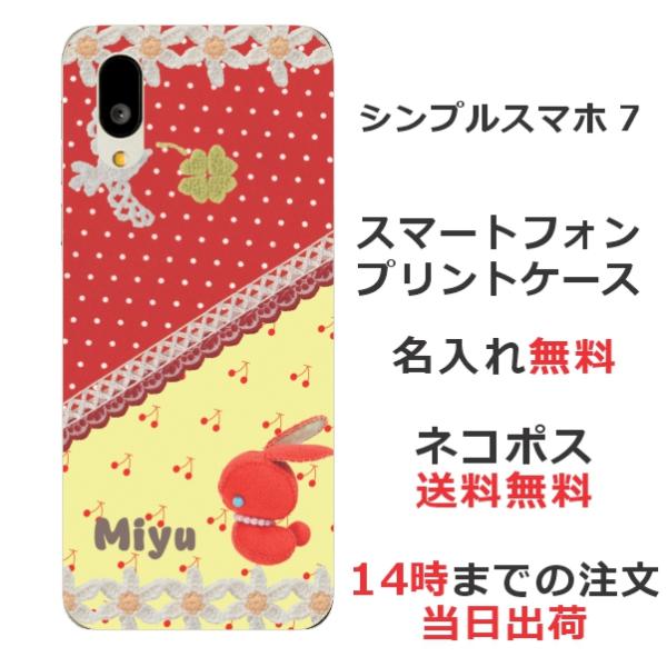 シンプルスマホ7 A404SH らふら 名入れ スマホケース 赤ウサギ 白い鳥