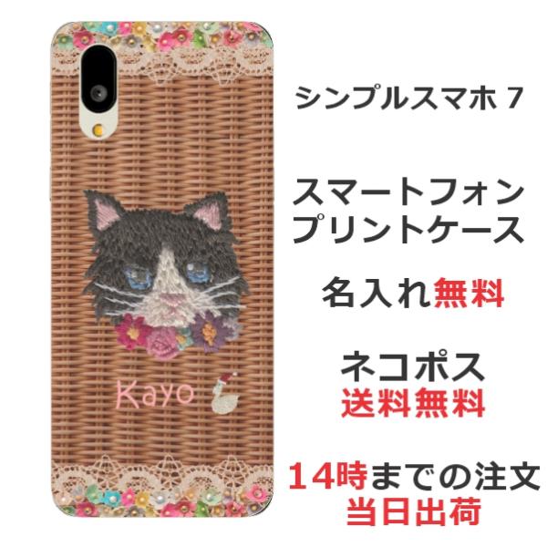 シンプルスマホ7 A404SH らふら 名入れ スマホケース 籐猫黒