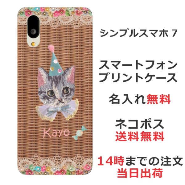シンプルスマホ7 A404SH らふら 名入れ スマホケース 籐猫白