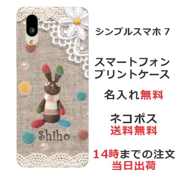 シンプルスマホ7 A404SH らふら 名入れ スマホケース コットンレース風 うさぎ