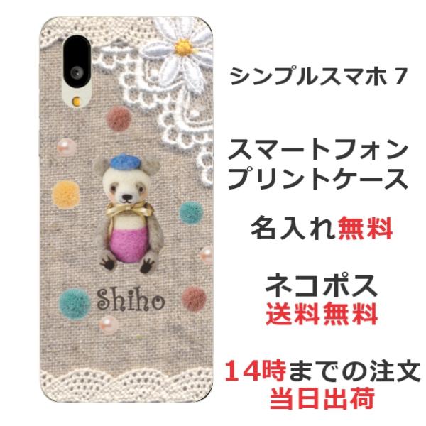 シンプルスマホ7 A404SH らふら 名入れ スマホケース コットンレース風 クマ
