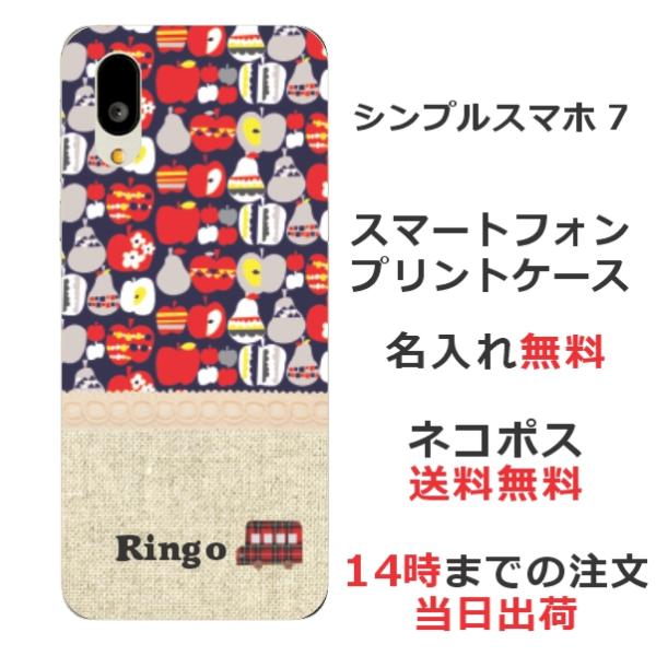 シンプルスマホ7 A404SH らふら 名入れ スマホケース 北欧デザイン フルーツ ネイビー
