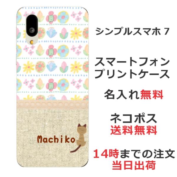 シンプルスマホ7 A404SH らふら 名入れ スマホケース 北欧デザイン カラフル フラワー