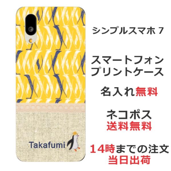 シンプルスマホ7 A404SH らふら 名入れ スマホケース 北欧デザイン ペンギン