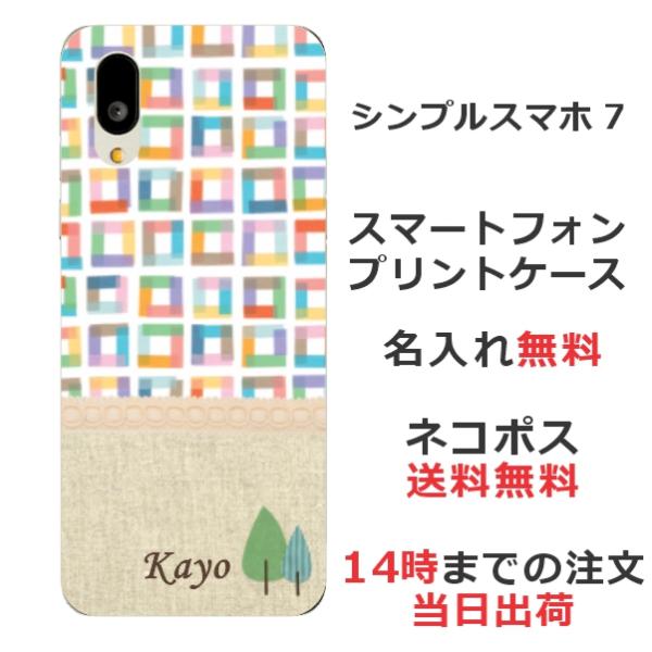 シンプルスマホ7 A404SH らふら 名入れ スマホケース 北欧デザイン ブロック