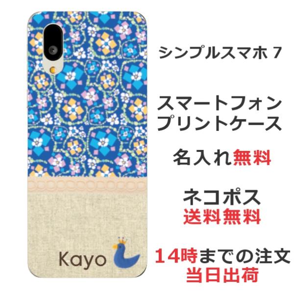 シンプルスマホ7 A404SH らふら 名入れ スマホケース 北欧デザイン フラワー ブルー