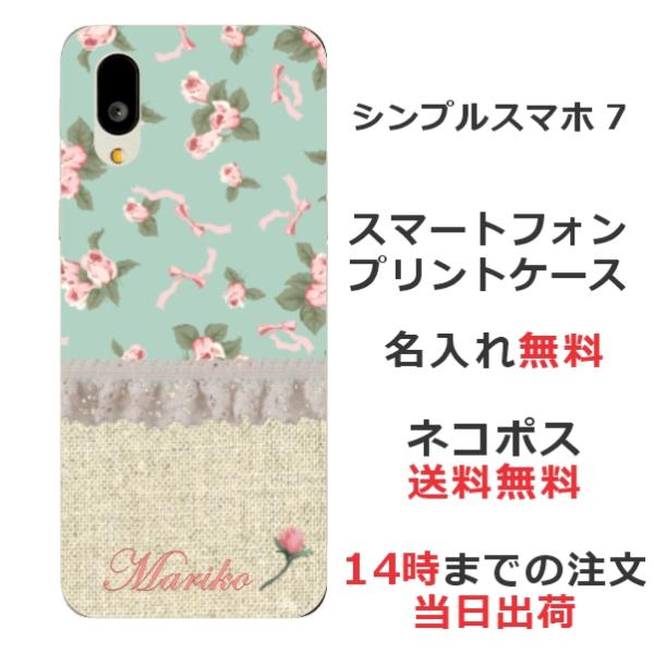 シンプルスマホ7 A404SH らふら 名入れ スマホケース 北欧デザイン フラワー ローズ