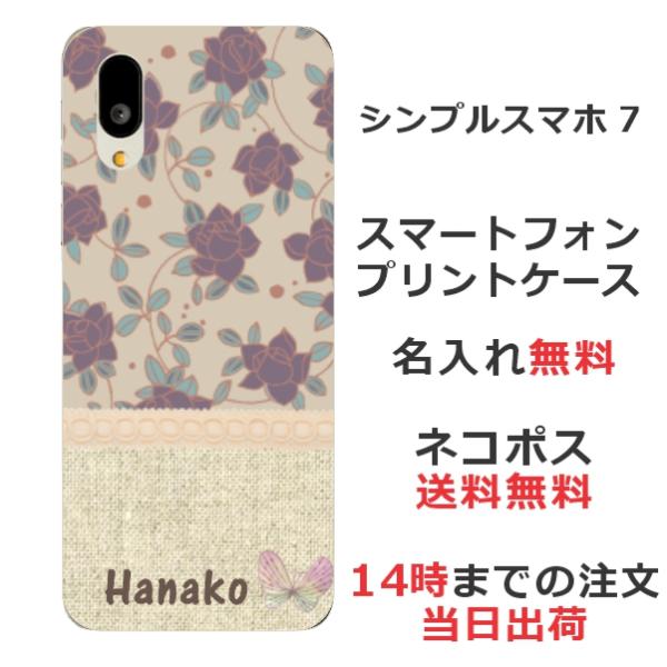 シンプルスマホ7 A404SH らふら 名入れ スマホケース 和柄 花 バラ
