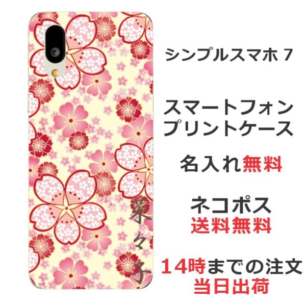 シンプルスマホ7 A404SH らふら 名入れ スマホケース 和柄 花 桜満開
