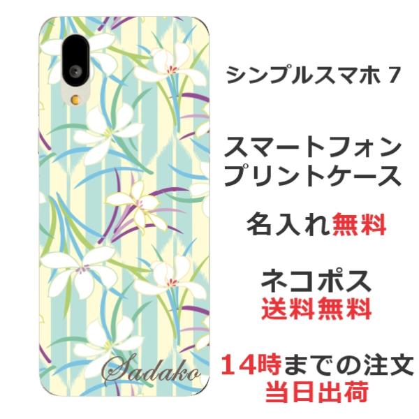 シンプルスマホ7 A404SH らふら 名入れ スマホケース 和柄 花 白花