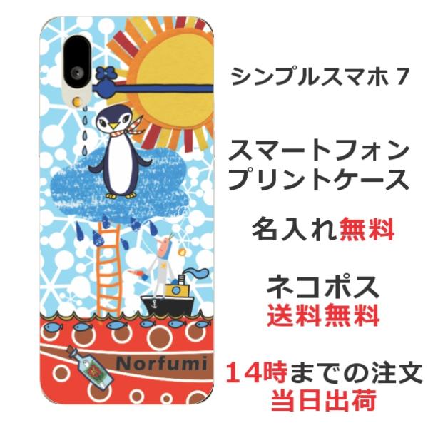 シンプルスマホ7 A404SH らふら 名入れ スマホケース ペンギン天国