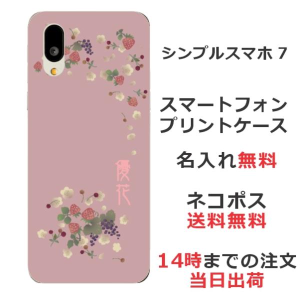 シンプルスマホ7 A404SH らふら 名入れ スマホケース 和柄 和花イチゴ
