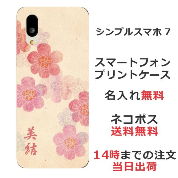 シンプルスマホ7 A404SH らふら 名入れ スマホケース 和柄 花 ふんわり花柄