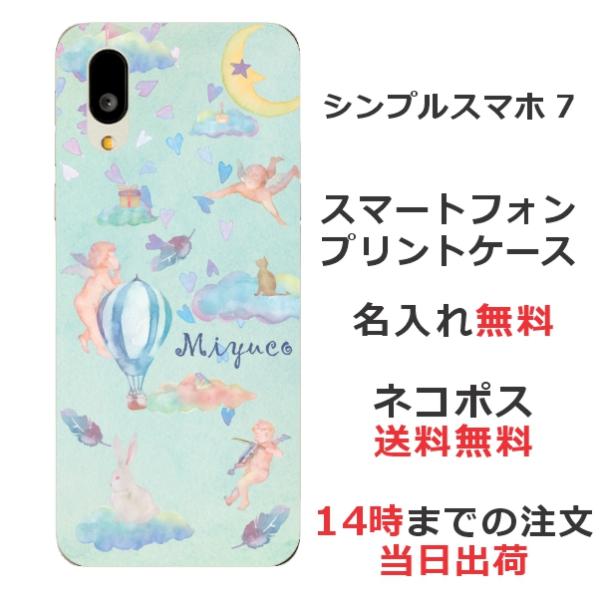 シンプルスマホ7 A404SH らふら 名入れ スマホケース エンジェルバルーン