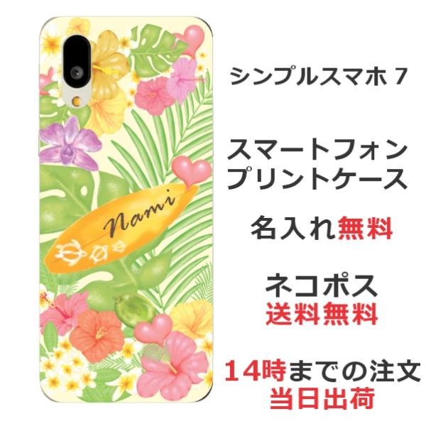 シンプルスマホ7 A404SH らふら 名入れ スマホケース ハワイアン トロピカルボード