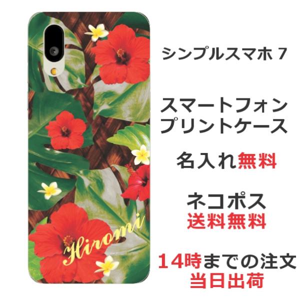 シンプルスマホ7 A404SH らふら 名入れ スマホケース ハワイアン ハイビスカス