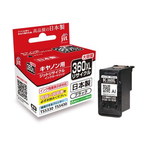 - 【商品説明】ジットのリサイクルインクは使い終わった純正インクカートリッジを回収し、独自で開発した技術を用いてクリーニングやインクの充填をして再度利用できるようにした環境配慮型製品です。【仕様】●色:ブラック●種別:顔料インク●適応型番:BC−360XL●対応品番:PIXUSTS5430/PIXUSTS5330 <ジェットプライス>