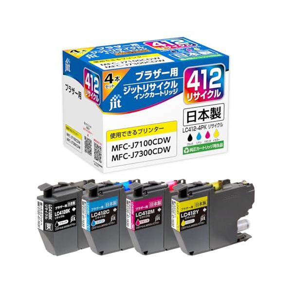 ジット ブラザー LC412-4PK 対応 4色セット 標準容量 リサイクルインク 日本製 JIT-NB4124P