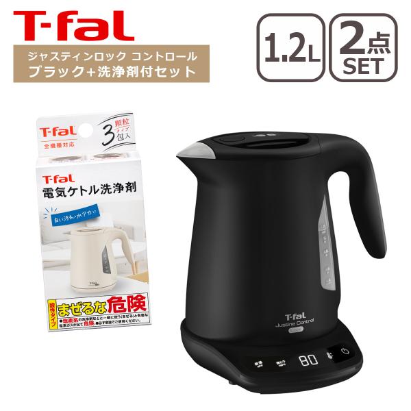ティファール 電気ケトル T-fal ジャスティン ロック コントロール ブラック 1.2L+洗浄剤セット KO823NJP