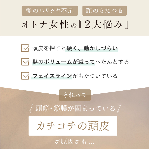 スパ体験しているかのようなリラックス感を味わいながら、「やわらぎケア」、「温熱ケア」、「頭髪洗浄ケア」の3つのケアで、本来の弾むような髪と顔つきを呼び覚ます。
