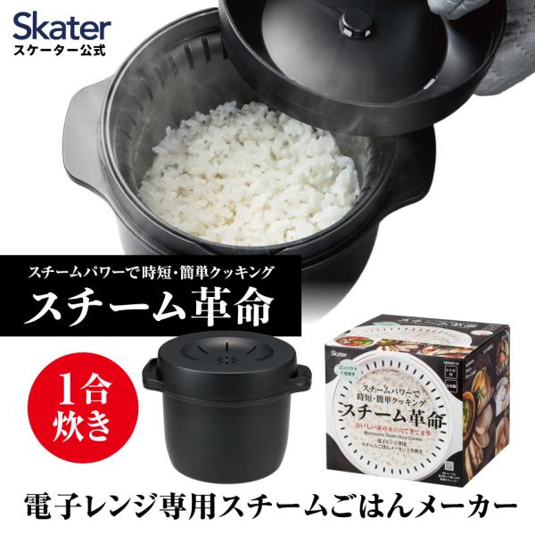 スケーター カニ穴ができる 電子レンジ専用スチームごはんメーカー 一合用 スチーム革命 日本製 レシピ付き 電子レンジ調理 ご飯 skater MWMR1N ブラック