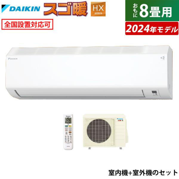 エアコン 8畳用 ダイキン 2.5kW 寒冷地仕様 スゴ暖 HXシリーズ 2024年モデル S254ATHS-W-SET ホワイト F254ATHS-W + R254AHS