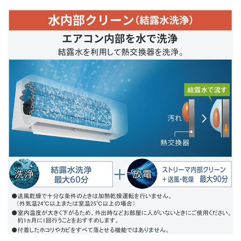 - 商品説明● 基本運転PIT制御 プレミアムプレミアム冷房タフネス冷房・暖房霜付き抑制熱交換器● しつど制御除湿: さらら除湿 リニアハイブリッド● 自動運転AI快適自動節電自動(温度・しつどコントロール)● 気流制御垂直気流(暖房・冷房)サーキュレーション気流オートスイング(上下/左右/立体)センサー風向● 清潔水内部クリーン(結露水洗浄)セルフウォッシュ熱交換器ストリーマ空気清浄/ストリーマ内部クリーン防カビ加工ファン銀イオン抗菌剤(室内機ドレンパン)抗ウイルスフィルターフィルター自動お掃除● 快適温度制御高温風モード(最大60℃吹出し)エコブースト制御ヒートブースト制御クールブースト制御インテリジェントデフロスト● 生活便利人・床温度センサー(人・床・壁)しつどクリーン消し忘れ防止機能パワーセレクト音声応答機能リモコン設定メモリー機能パワフル運転ランドリー乾燥室温パトロール新・おやすみ運転● タイマー機能時刻設定入切タイマー 学習(入のみ)ワンタッチ切タイマー● その他スマホ接続対応 内蔵スペック* 電源: 単100V 20A* 電源タイプ: 室内電源タイプ* プラグ形状: IL型* 暖房畳数のめやす: 11〜14畳( 18〜23m2 )* 暖房能力(kW): 5.0( 0.4〜7.2 )* 暖房消費電力(W): 1000( 70〜2000 )* 冷房畳数のめやす: 11〜17畳( 18〜28m2 )* 冷房能力(kW): 4.0( 0.3〜5.3 )* 冷房消費電力(W): 920( 65〜1600 )* 消費電力量 期間合計(年間): 1146kWh* 目標年度: 2027年* 省エネ基準達成率: 100%* 通年エネルギー消費効率(APF): 6.6* 低温暖房能力: 5.7kW(外気温2℃時)パワフル設定時。* 冷房定格エネルギー消費効率(冷房COP): 区分(い)* 室内機寸法(高×幅×奥行き)(mm): 295×798×370* 室外機寸法(高×幅×奥行き)(mm): 610×795(+78)×300(+42)( )内は突起物の寸法です。【メーカー直送品の注意事項】・取付工事はお受けできません・置き配等の指定不可となります※詳しくは商品ページバナーをご確認下さい。【ご注文からお届けの流れ】※詳しくは商品ページバナーをご確認下さい。【代引きについて】こちらの商品は、代引きでの出荷は受け付けておりません。【配送について】北海道、沖縄、離島は配送できません。予めご了承ください。ダイキン AXシリーズ ホワイト6畳用S226ATAS-W8畳用S256ATAS-W10畳用S286ATAS-W12畳用S366ATAS-W14畳用S406ATAS-W14畳用S406ATAP-W14畳用S406ATAV-W18畳用S566ATAP-W18畳用S566ATAV-W20畳用S636ATAP-W20畳用S636ATAV-Wダイキン AXシリーズ ベージュ6畳用S226ATAS-C8畳用S256ATAS-C10畳用S286ATAS-C12畳用S366ATAS-C14畳用S406ATAS-C14畳用S406ATAP-C14畳用S406ATAV-C18畳用S566ATAP-C18畳用S566ATAV-C20畳用S636ATAP-C20畳用S636ATAV-C