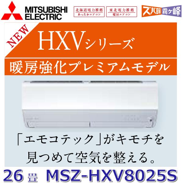 【2025年モデル】三菱電機 MSZ-HXV8025S W ルームエアコン 26畳程度 8.0kw 単相200V ピュアホワイト 壁掛形 HXVシリーズ (MSZ-HXV8024S W の後継品) 〇[G]