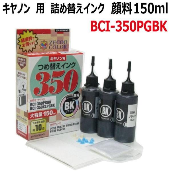 ( ZCC350BKX3 )キヤノン用詰め替えインク( BCI-350PGBK )対応( 大容量トリプルセット )顔料黒インク 150ml( 器具付 )