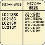 - ※カートリッジの中にインクは入っていません。当製品はZB213KT4の2回めからの交換用カートリッジのみの製品です(インク無し、リターンICチップ付)。詰め替え用の注入口があり、簡単にインクを補充しが出来、再利用を可能にするものです。インクを入れる前のブランクカートリッジです。 カラー ブラック(BK:黒)シアン(C:青)マゼンタ(M:赤)イエロー(Y:黄) 特記事項 ※詰替回数はあくまでも目安です。純正カートリッジの印刷枚数を保証するものではありません。 ※取扱説明書をよく読んでご使用ください。 DCP-J4225N/ DCP-J4220N/MFC-J5820DN/MFC-J5720CDW/MFC-J5620CDW/MFC-J4725N/MFC-J4720N/ LC213BK/LC213C/LC213M/LC213Y/