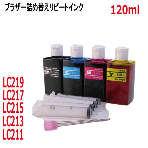 ( RPB213BCL120-T ) ブラザー用 LC211 LC213 LC215 LC217 LC219 LC21E カートリッジ対応(リピートインク)詰め替えインク(4色x各120ml)インジェクター付