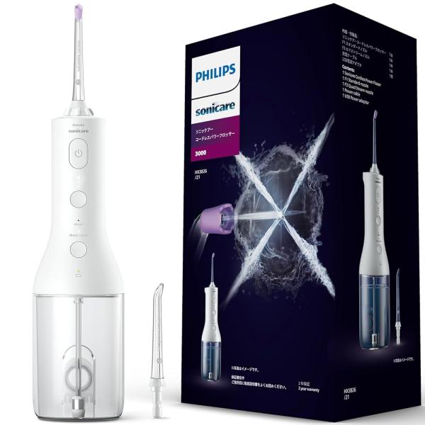 フィリップス ジェットウォッシャー ソニッケアー コードレスパワーフロッサー3000 口腔洗浄器 (X型水流ジェットウォッシャー) HX3826/21 ホワイト