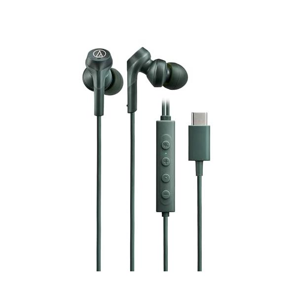 オーディオテクニカ ATH-CKS330NC GR イヤホン 有線 タイプC ノイズキャンセリング 1.2m U型コード 遅延なし マイク付 リ