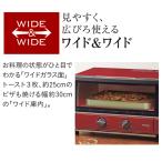 - 商品説明★ こんがり、ふっくら焼きあげる「黒遠赤ヒーター」食材をこんがり、ふっくら焼きあげる「黒遠赤ヒーター」(上部)を搭載。従来の遠赤ヒーターより遠赤外線量約5%UPしました。3本ヒーター(ハイパワー1300W)で焼きムラをおさえます。★ 余分な油が流れやすく、こびりつきにくい「シリコン加工 波形調理トレイ」調理の幅が広がる「シリコン加工 波形調理トレイ」を採用。波形の形状で余分な油を流れやすくし、料理をヘルシーに仕上げます。また、シリコン加工を施しているので、こびりつきにくく、お手入れもカンタンです。★ 幅約30cmの「ワイド&ビッグ庫内」トースト3枚が一度に焼けて、忙しい朝にもうれしい幅約30cmの「 ワイド & ビッグ庫内」。直径約25cm(10インチ)のピザも丸ごと焼くことができます。★ 料理やトーストが取り出しやすい「平行スライド焼アミ」焼アミが平行にせり出す設計で、熱々のトーストやカップケーキなどの高さのある食材の出し入れもしやすくなっています。★ メニューの幅が広がる「無段階温度調節」と「30分ロングタイマー」約80〜250度の範囲できめ細かく無段階に温度調節ができます。タイマーは30分まで設定できるロングタイマー。★ 焼きムラをおさえる「ネット状焼アミ」小さい食材も下に落ちにくく、パンやお餅も焼きムラをおさえてこんがりおいしく焼きあげます。焼アミは取りはずして洗えるので、お手入れにも便利。スペック* 本体サイズ(高さ×幅×奥行):225×351×330mm* 庫内寸法(高さ×幅×奥行):90×300×265mm* 本体重量:約3.7kg* 電源コード長:1.0m* トースター枚数:3枚* ヒーター種類:上:黒遠赤外線ヒーター×1、下:ヒーター×2* 加熱方式:遠赤外線ヒーター* 火力切換機能:無段階(80〜250℃)* タイマー:30分* 消費電力:1300W* 消費電力:1000W以上* 付属品:調理トレイ(シリコン塗装)* 電源 AC100V 50/60Hz* パンくずトレイ有