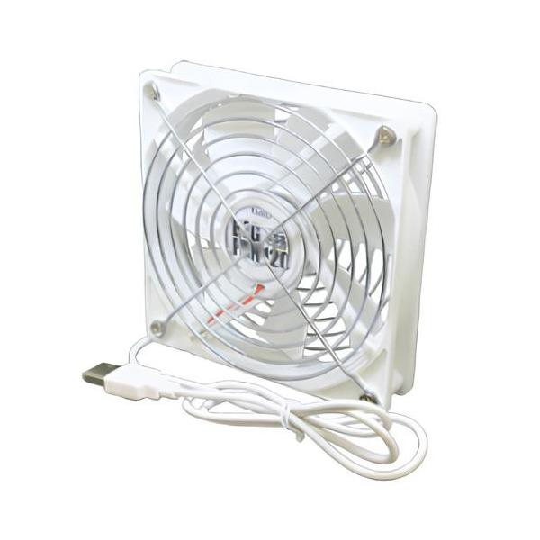 - 高回転のパソコン取付け用12cm角ファンを採用したUSB接続の”かなり”涼しい卓上扇風機のホワイトモデルです。USBで動作するため、パソコンだけでなく、ゲーム機器や家庭用AV機器のUSBから電源を取ることができます。モバイルバッテリーと組み合わせれば、屋外にて使用することができます。ファン面積が大きく、風量が多くて静かなため、あらゆるシーンでご利用いただけます。■しっかり冷やせるUSBファン小型ですが風量が大きいので様々な用途でご利用いただけます。デスクに置いて小型扇風機として使うのもよし。Wi-FiルーターやHDDなど電子機器や、水槽などの冷却、熱がこもりやすいテレビ台内部の排気や、車中の換気扇がわりにと、ご用方法は自由自在。■面倒な配線は必要なく、USBポートにつなぐだけPC、ゲーム機、TV、レコーダー、Wi-Fiルーター等のUSB端子に接続するだけで簡易冷却スタート。■熱による電子機器の故障や劣化を軽減させるTVやパソコンに繋いだ外付けハードディスク (HDD)やWi-Fiルーター、家庭用ゲーム機等は設置場所や条件によって高い熱を持つ事があります。熱による故障や劣化を防ぐために、ファンによる冷却は有効な手段です。■ドライヤー代わりにマニキュア、ネイルの乾燥用にも。旅行や出張先の洗濯物を乾かす簡易乾燥機としても。■夏場の水温上昇の防止として水槽やペット用の空冷ファンとしてもおすすめです。ファンガードが有るので安心です。