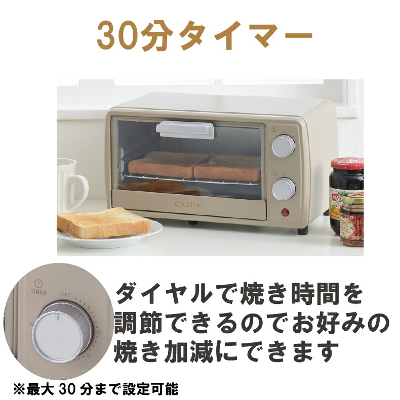 爆買 トースター 2枚 オーブントースターコッチネ9L coccine オーブン トースター スモークグリーンCO-01 グレージュCO-02 おしゃれ シンプル