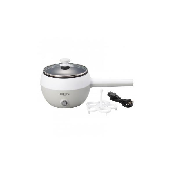 - ERETTO「mono」 電気片手鍋16cm ET-102 電気で加熱できる片手鍋です。コンロやIHがなくても、ダイニングで、オフィスで煮る・茹でるの調理ができます。一定の温度を保ってくれるので鍋物やしゃぶしゃぶにもピッタリです。チーズやチョコのフォンデュ鍋としても楽しめます。内鍋はフッ素加工なのでお手入れ簡単です。ゆでたまごのラック付きです。 生産国:中国 素材・材質:本体:ポリプロピレンフタ:強化ガラス内鍋部:18-8ステンレス(表面:ふっ素樹脂塗膜加工) 商品サイズ:約355×193×176mm 重量:約810g 仕様:消費電力:AC100V-100W・600W、50/60Hzコードの長さ:約1.1m温度ヒューズ:170度 付属品:ゆでたまごラック(サイズ:φ117×84mm・重量:約15g)保証書(保証期間:1年間) モダンな色合いの生活家電! キーワード【キッチン 日用品 文具 台所用品 調理器具 鍋 グリル 片手鍋】