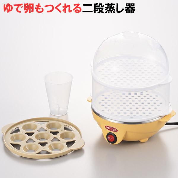 プエル 電気二段蒸し器 (PU-112) エッグスチーマー ゆで卵器 ゆでたまご 半熟 完熟 温野菜 蒸し料理 肉まん 便利 計量カップ付き ふっくら 時短 下ごしらえ