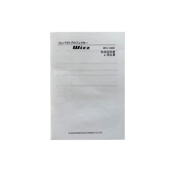 - ダイニチ電子 MANUALS400 取扱説明書 WPJ-S400用 発売日:2024年4月26日●取扱説明書コンパクトプロジェクター(WPJ-S400)の取扱説明書です。(※標準付属同品)●