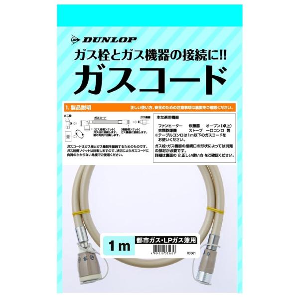 ダンロップホームプロダクツ 都市ガス・LPガス兼用 ガスコード グレー 1m ガス栓とガス機器の接続に