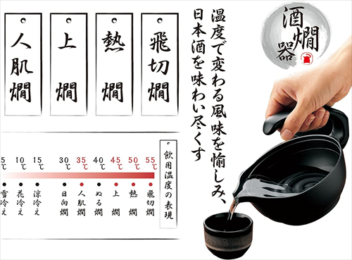 - メーカー:ツインバードJAN:4975058441821型番:TW-D418B■商品説明■●日本酒の種類やお好みに応じて4段階に温度設定が可能です●お酒をセットして約13分で加熱しすぎることなく飲み頃の燗に。保温機能付●一升瓶からでも注ぎやすい片口型酒器●小瓶の清酒が丁度呑み切れる一合半(約300ml)サイズ■仕様■・サイズ: 17.5×14×22cm ・本体質量: 0.92kg ・素材・材質: 酒器:AL(フッ素加工)、取っ手・ふた・下本体:PP、本体・上:PBT ・電源: 100V 50-60Hz共用 ・消費電力: 250W ・温度調節範囲: 4段階 37〜60℃(人肌燗/上燗/熱燗/飛切燗)