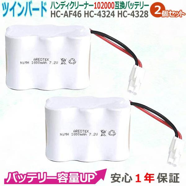 2個セット TWINBIRD ツインバード工業 HC-AF46 HC-4324 HC-4328 ハンディクリーナー 102000 互換 【大容量】 バッテリー AREOTEK