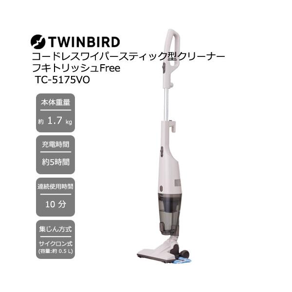掃除機 ツインバード TC-5175VO [フロアワイパーつき コードレススティッククリーナー フキトリッシュFree セピアアイボリー]