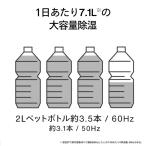 - ●1日あたり7.1L(60Hz)/6.3L(50Hz)の除湿能力と4Lの大容量タンクを備えた衣類乾燥除湿機です。●消費電力の低いコンプレッサー式だから日々の電気代を抑え、気兼ねなくお使いいただけます。●また、設置面積がほぼA4用紙サイズの省スペース設計です。■製品寸法[ W x D x H ]:約 314 × 225 × 527 mm■製品質量:約 10.0 kg■定格電圧:AC 100 V 50 / 60 Hz■定格消費電力:165 W / 170 W ( 50 Hz / 60 Hz )■電源コード長:約 1.8 m■除湿方式:コンプレッサー方式■定格除湿能力:6.3 L / 日 ( 50Hz ) 、7.1 L / 日 ( 60Hz )■タンク容量:約 4 L ( 約 4 Lで自動停止 )■オフタイマー:約 1 / 2 / 3 / 4 / 5 / 6 / 7 / 8 時間■除湿可能面積の目安 木造:約 8 畳 ( 約 13 m^2 ) / 約 9 畳 ( 約 15 m^2 ) ( 50 / 60 Hz ) プレハブ:約 12 畳 ( 約 20 m^2 ) / 約 14 畳 ( 約 23 m^2 ) ( 50 / 60Hz ) 鉄筋:約 16 畳 ( 26 m^2 ) / 約 18 畳 ( 約 30 m^2 ) ( 50 / 60 Hz )■ルーバー ( 風向 ):上下 ( 自動 )■連続排水:可能 ※市販のホース ( 内径 12 mm ) が必要